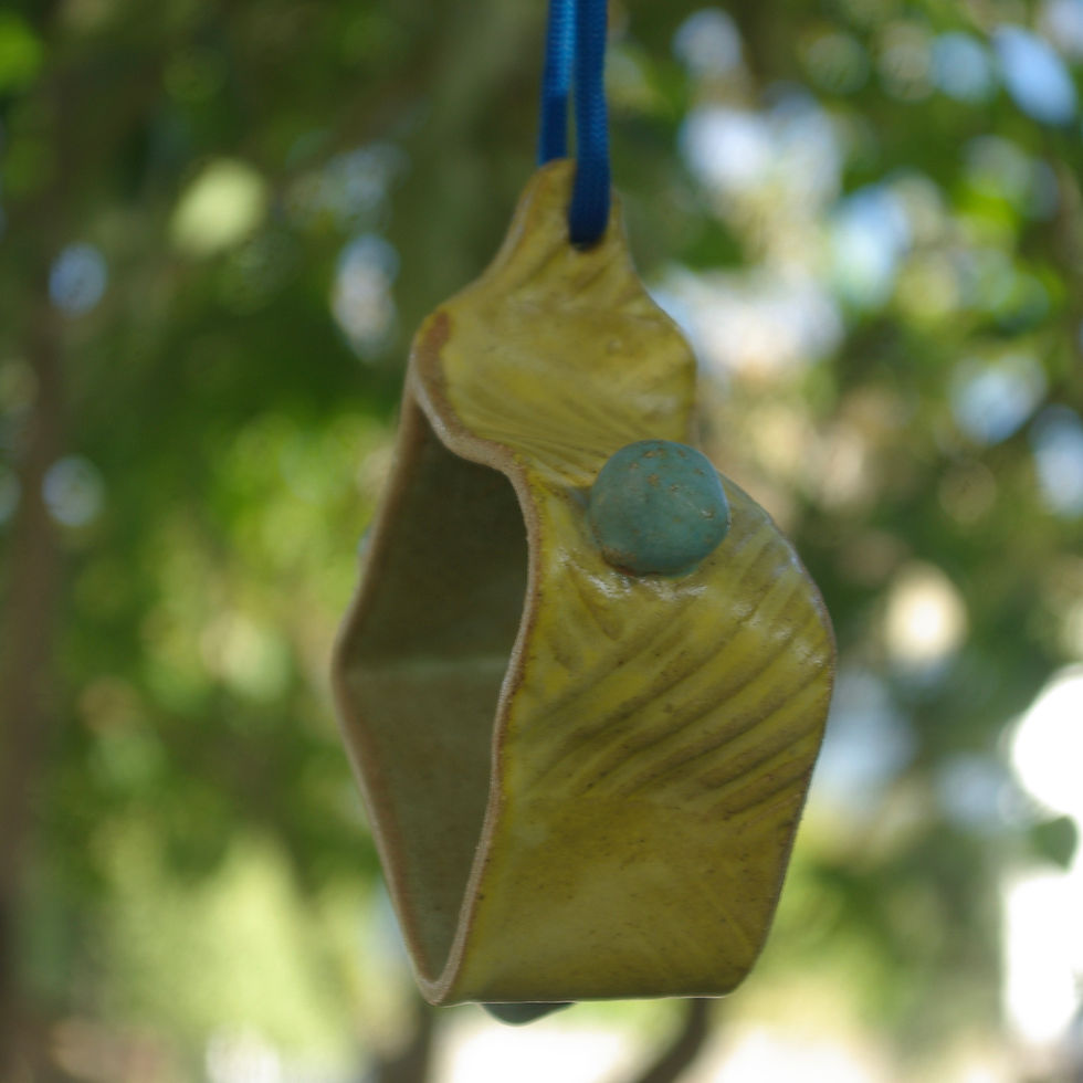 Stoneware apple or suet bird feeder ring (Turquoise and Yellow)